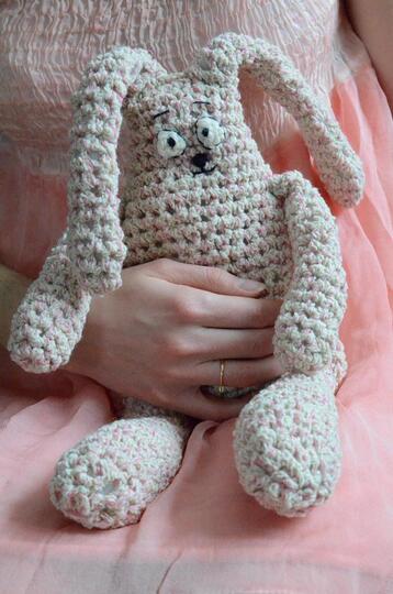 Der Kuschelhase ist von Ohren- bis Pfötchenspitzen 63 cm groß.