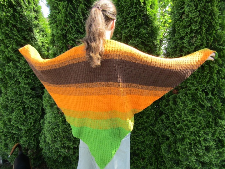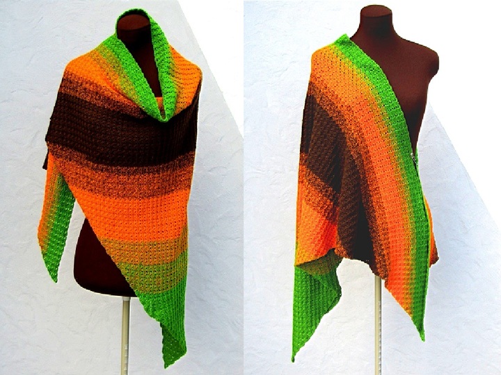 Dieses wunderschöne Tuch erinnert mit seinen Farben an einen Spaziergang im Herbst. Die herrlichen Farben schreien förmlich nach Bäumen, deren Blätter in den wunderschönen Nuancen des Herbstes leuchten.