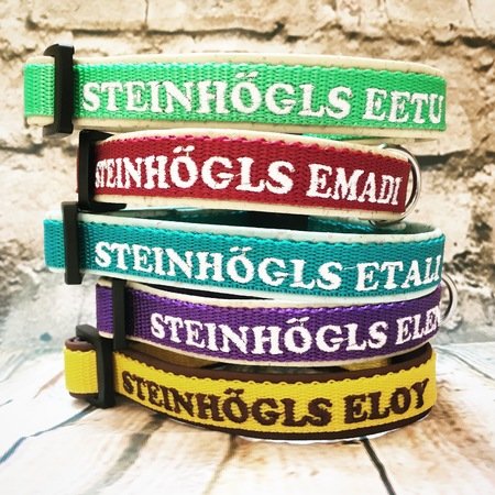 Hunde-Halsbänder selbst herstellen, ist wohl das Beste was man sich und seinem Geldbeutel antun kann. Nicht nur, dass man freie Farb- und Formwahl (es gibt sooo viele tolle Webbänder!!) hat, man kann seinen Hunden quasi für jeden Tag im Jahr ein Halsband nähen – für Weihnachten und für Ostern oder auch zu besonderen Anlässen. Das Gurtband kann man besticken lassen und dann verarbeiten oder eben eine hübsche Borte dran nähen. Der Fantasie sind auch hier keine Grenzen gesetzt. So und jetzt: VIIIIEL Freude beim Nähen ♡