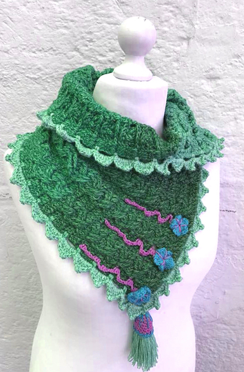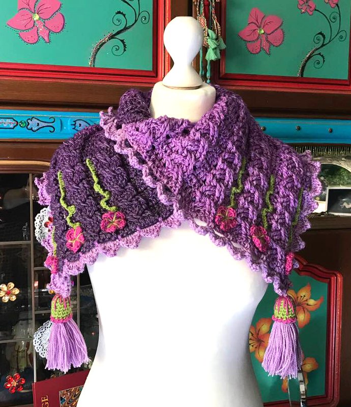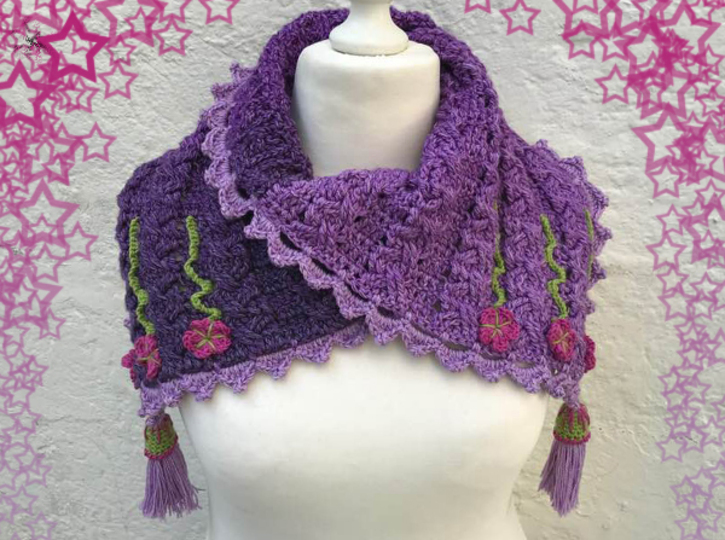 Der Schluckaufloop "Zopfwunder" mit seinen 5 gehäkelten Zöpfen..den 6 netten Blümchen und den 2 Quaste sieht einfach TOLL an Deinem Hals aus und hält Dich schön warm!