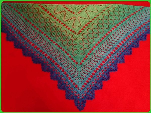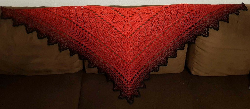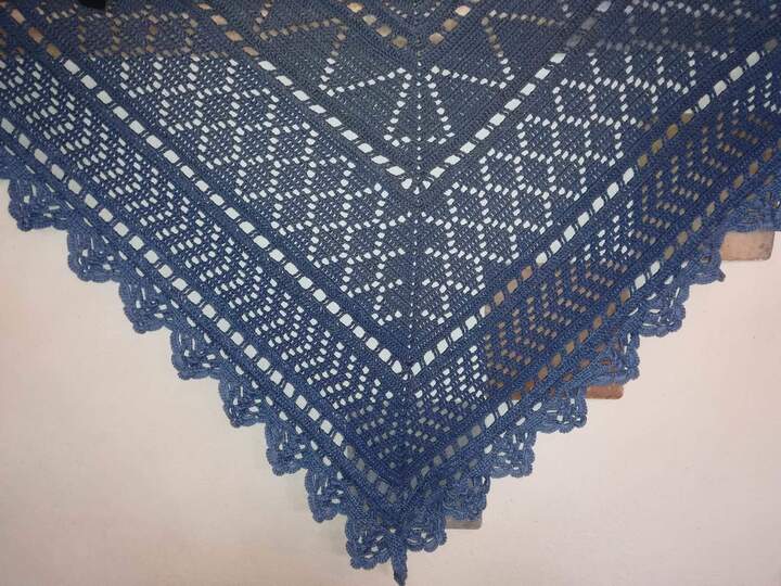 Die Anleitung zu dem Tuch ist schriftlich ausformuliert und beinhaltet eine Häkelschrift.