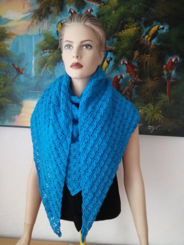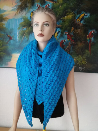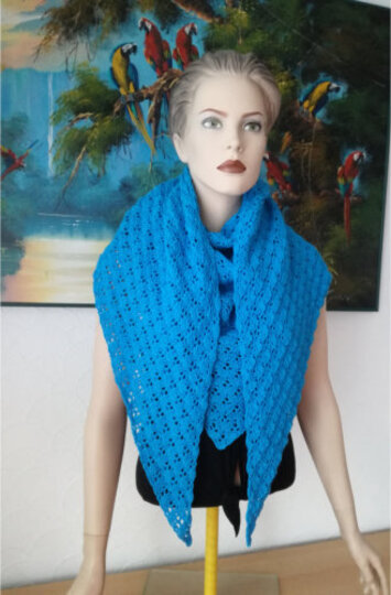 Das Tuch / Dreieckstuch kann mit jeder Wolle und Nadelstärke gearbeitet werden. Besonders schön auch mit Farbverläufen.