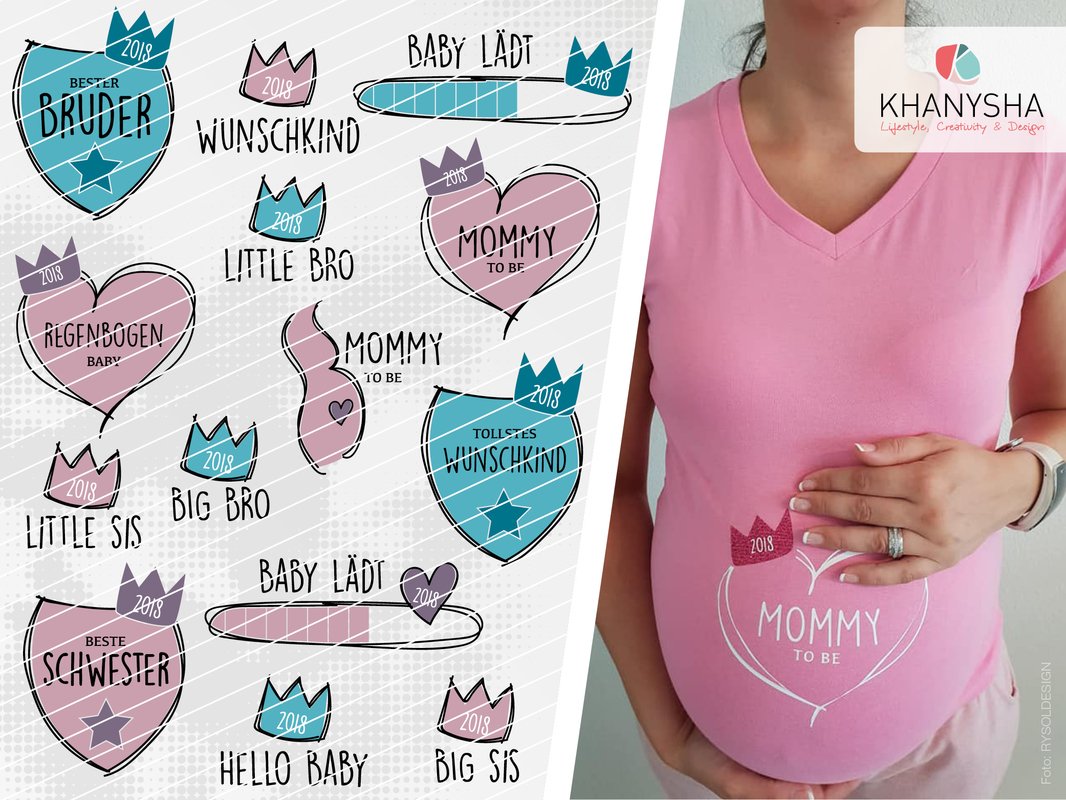 Das Set hat jede Menge Auswahl für die werdende Mama und Geschwister. Eignet sich auch super zum applizieren und nähmalen ;)