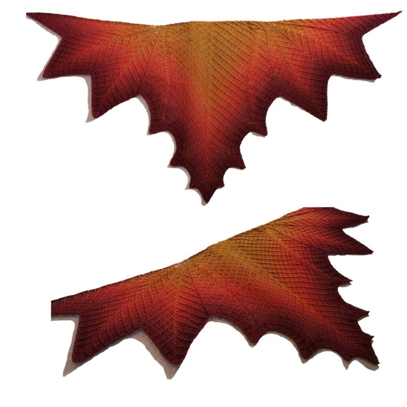 Ich habe mein 250gr / 1000m (4 färgendes Farbverlaufsgarn) und Nadelstärke 4mm bearbeitet. Es hat eine Spannweite von 165cm und eine Tiefe von 80cm.
