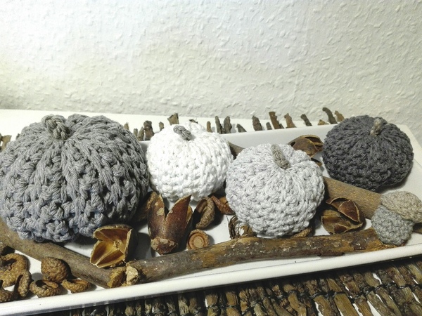 Häkelanleitung für einen wunderschönen kleinen Kürbis, Schnell gehäkelt aus festen Maschen, halben Stäbchen und Stäbchen. Sehr schön als Herbst-Deko oder aber auch an Halloween als Tisch-Deko. Am besten häkeln Sie gleich mehrere in verschiedenen Farben und Größen. Toll in Kombination mit gehäkelten Eicheln (siehe Shop). Viel Spaß beim Nacharbeiten ....
