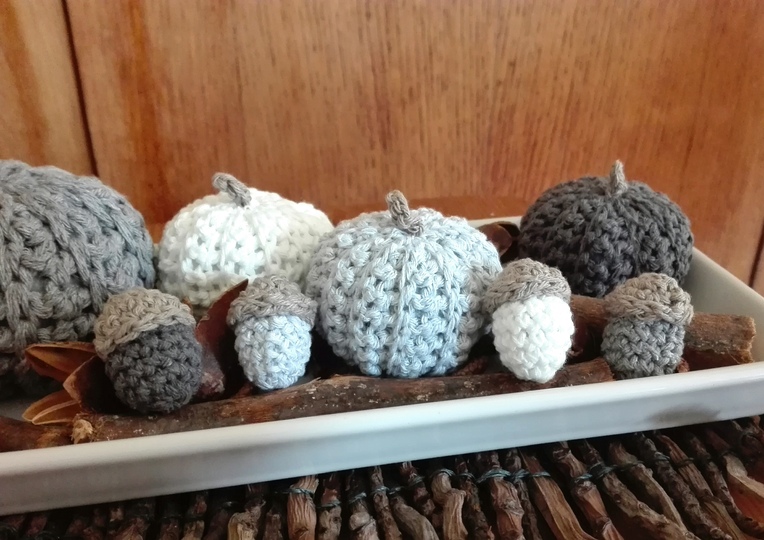 Häkelanleitung für zuckersüße kleine Eicheln als Herbst-Deko. Schnell gehäkelt aus festen Maschen. Am besten häkeln Sie gleich mehrere in verschiedenen Farben. Toll in Kombination mit gehäkelten Kürbissen (siehe Shop). Viel Spaß beim Nacharbeiten ....