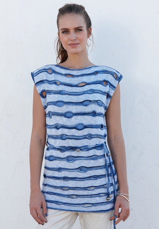 Unbeschwerte Leichtigkeit strahlt diese sommerliche Tunika aus. Mit Lochmuster, Streifendesign und Bindegürtel in der Taille ist sie der Look für die ersten Urlaubstage im Jahr!