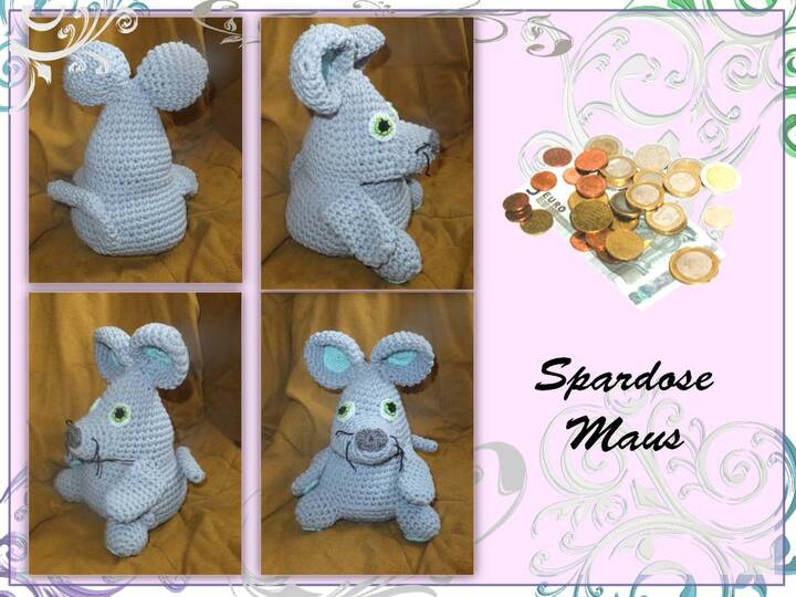 Diese tierische Spardose wird etwa 22 cm groß . Enthält 2 Ebooks: Grundanleitung + Spardose Maus