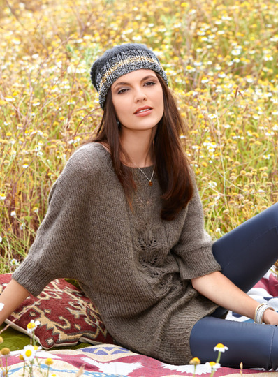 Einfach draussen nochmal die Seele baumeln lassen... Wohlfühlen garantiert der weiche Alpakapulli mit einem zarten Ajourmuster. Er wird zweifädig gestrickt. Die passende Mütze mit Glitzerbund hält nicht nur den Kopf warm, sondern ist auch ein stylisches Muss. Sie wird aus zweierlei Garnen und dreifädig gestrickt.