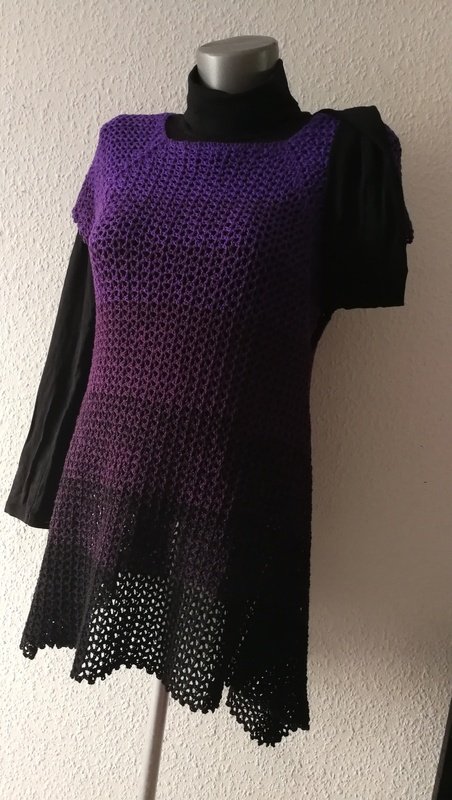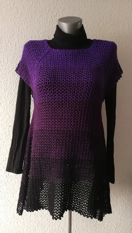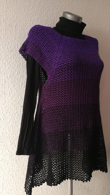 Die etwas andere Tunika. Mit seitlichen Zuahmen fällt sie sehr schön und kann zu allem gertragen werden. Ihr erhaltet eine ausführliche Anleitung für die Tunika in Bild, Fotos und schriftlicher Form, auch Häkelschriften sind vorhanden.