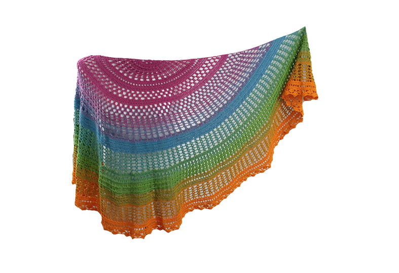 Ria, dass halbrunde Tuch ist ein absoluter Hingucker. Diese halbrunde Form ist sehr schön als Tuch oder Stola tragbar. Diese Anleitung ist schriftlich Schritt für Schritt erklärt und enthält eine Häkelschrift.