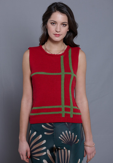 Rosarios "Regata" (100% Baumwolle, LL ca 275 m/100 g): ca 200 (300-300-300) g Rot Fb 54 und 100 g Grün Fb 105; addi-Stricknd 3,5 und 4 mm, addi-Spielstricknd 4 mm, addi-Häkelnd 3 mm.