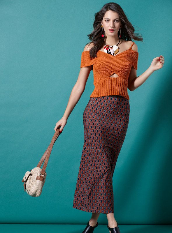 Blicke auf sich ziehen - gelingt iIn diesem Off Shoulder-Top mit breitem Bund problemlos! Es wird aus zwei "Schals" gestrickt, überkreuzt und im Rücken mit einem Reißverschluss geschlossen. Wow!