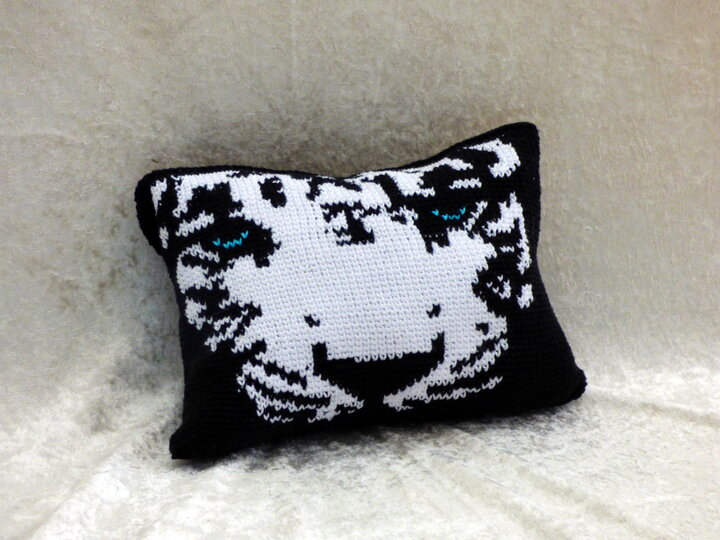 Ob als Tasche oder als Kissen, derr weiße Tiger wird Dich und Deine Freunde in den Bann seiner leuchtend blauen Augen ziehen. Das fertige Projekt wird ca 25cm breit und ca 20cm hoch.