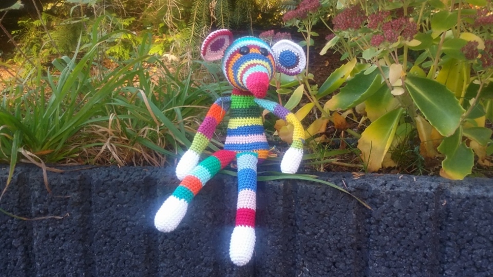 Mucki wird bei Verwendung von Nadelstärke 2,5 etwa 40 cm lang.