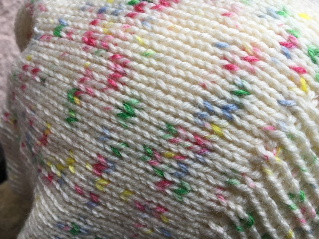 Die Idee für die Mütze hatte ich bereits letztes Jahr. Diese war eine von drei Abo Mützen, die ich im Angebot hatte.