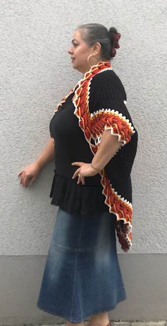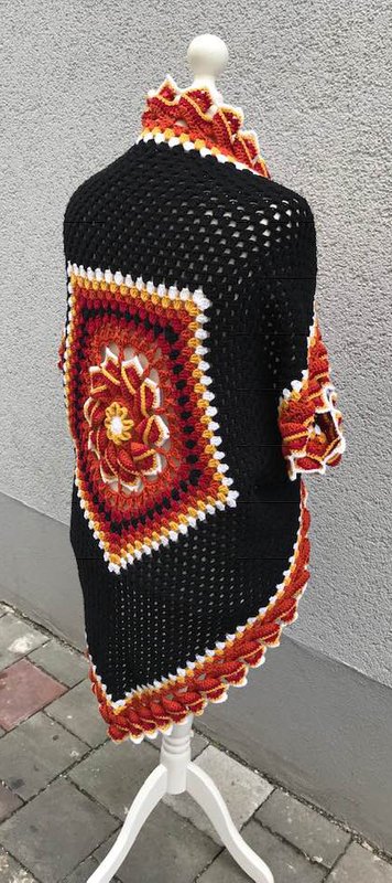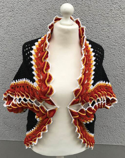 Der Seelenschmeichler/Seelenwärmer "FEUERBRAUT" ist eine etwas andere Seelenschmeichleranleitung!...das spannende Design ist ein echter Häkelleckerbissen ! Der Seelenschmeichler "FEUERBRAUT" ist hinten auch länger und macht so eine schöne Figur! Diese Jacke ist auch für große Größen geeignet..man kann den Seelenschmeichler "FEUERBRAUT" in fast jeder Größe machen...dieser hier ist in Größe 46-52...die Vergrößerung oder Verkleinerung ist nicht so schwer!