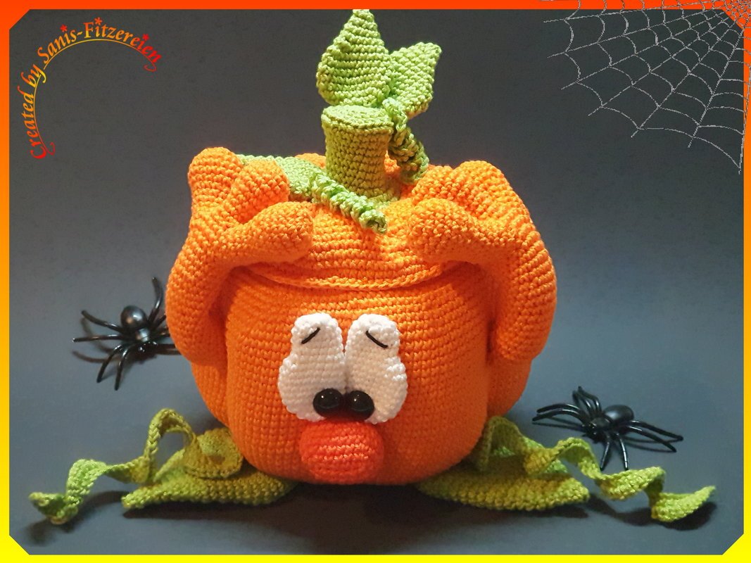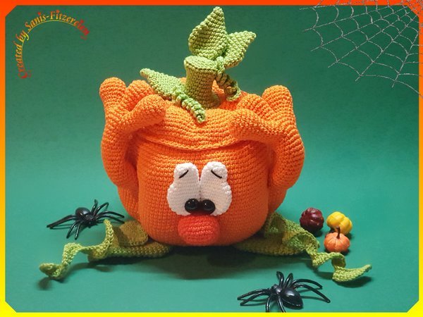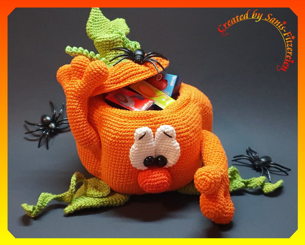 der kleine Überraschungkürbis passt ganz hervorragend zu eurer Halloween-Dekoration und kann mit Süßigkeiten