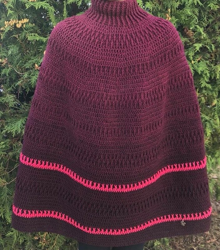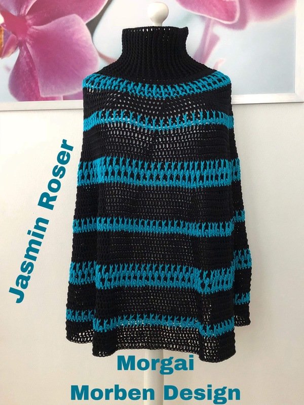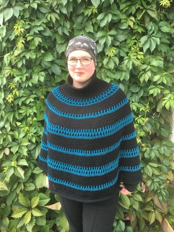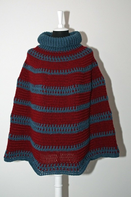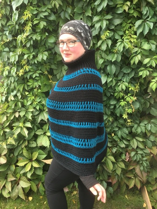 Der Poncho wird in einem Stück, von oben nach unten gehäkelt.