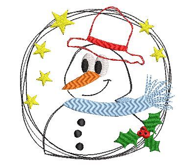 Süße Stickdatei Schneemann im DOODEL (Fransen-) Stil.