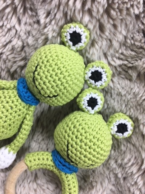 Mit meiner detaillierten Anleitung könnt Ihr euch oder eurem Baby eine eigene Rassel und das passende Kuscheltier häkeln.