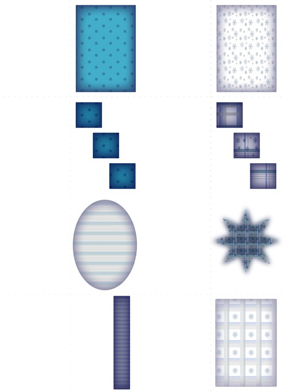 Inhalt: 2x Kartenaufleger in versch. Formen und Größen auf DinA4, 8x Kartenvordrucke in DinA6, 4x Designpapier in DinA4 und 16x in ca DinA6.