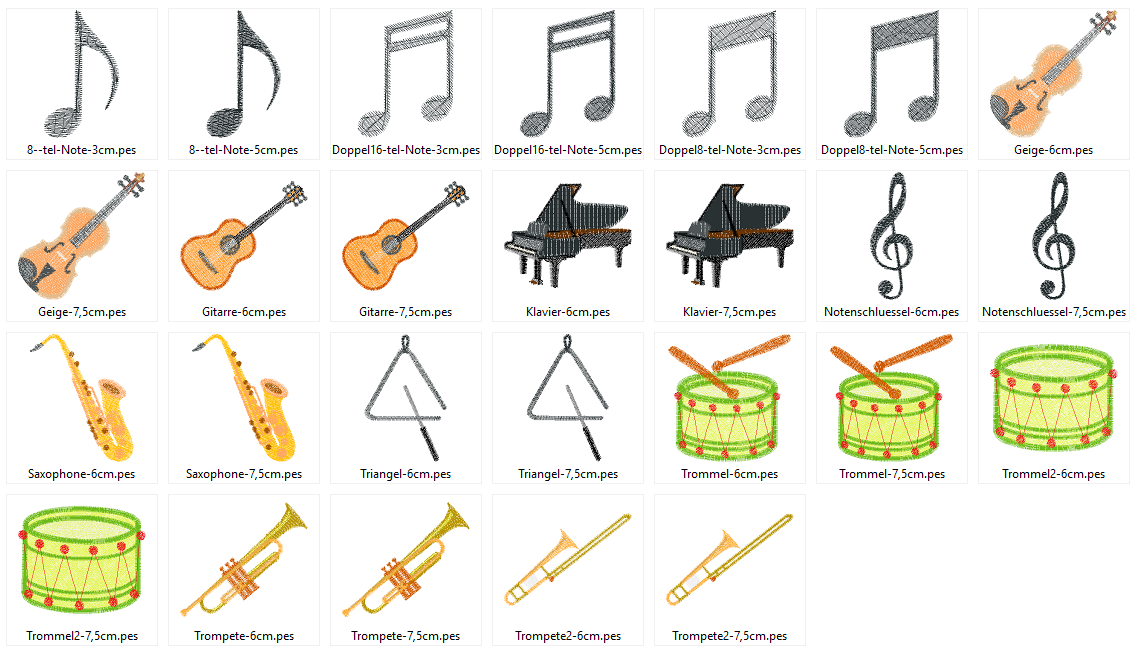 ♥ Stickdatei für kleine Musikinstrumente je in 6 und 7,5cm ♥