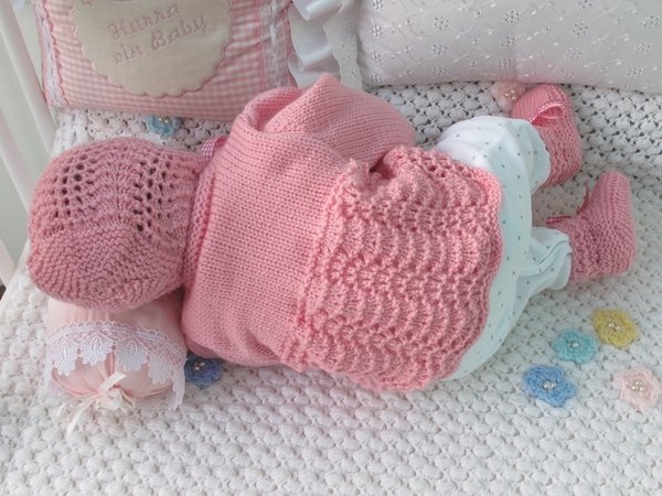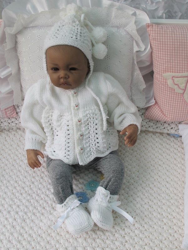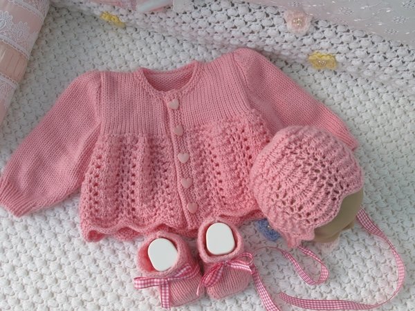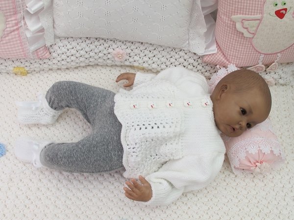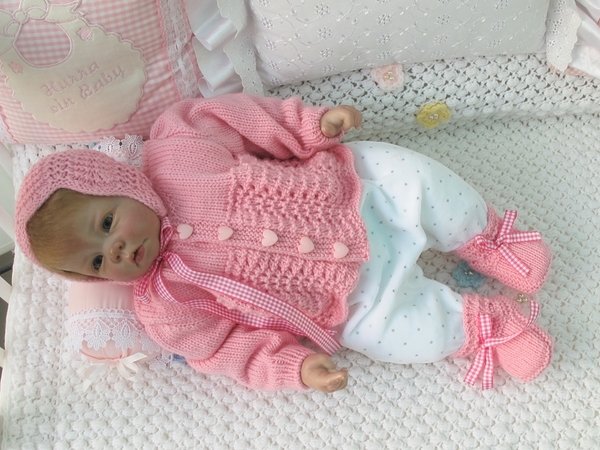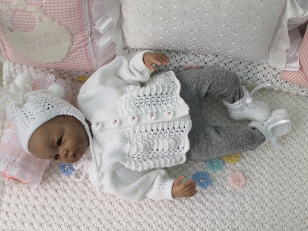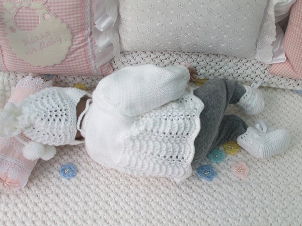 Strickanleitung für ein wunderschönes Set, 3-teilig für Babys & Reborns, Gr. 56 Das Set ist aus Babywolle gestrickt. Die Anleitung ist sehr genau beschrieben und mit vielen Fotos mit Mütze für Jungen und Mädchen