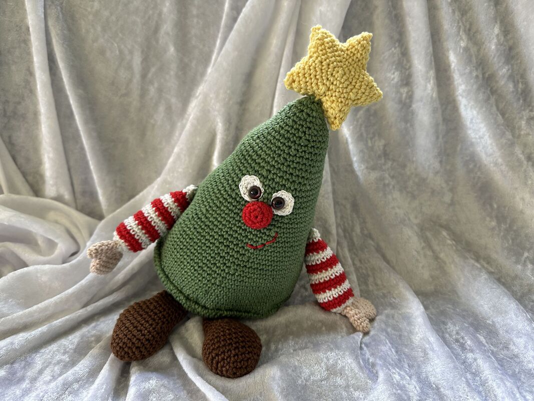 Toni Tannenbaum wird, unter Verwendung des angegebenen Materials, 19 cm hoch (ohne Stern). Ich persönlich empfehle für das Nacharbeiten all meiner Kuscheltiere Baumwollgarn.