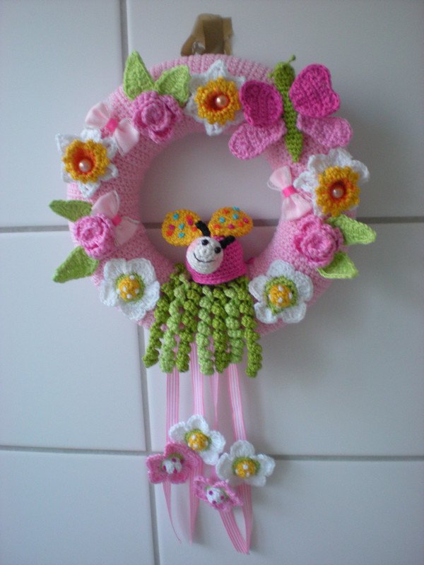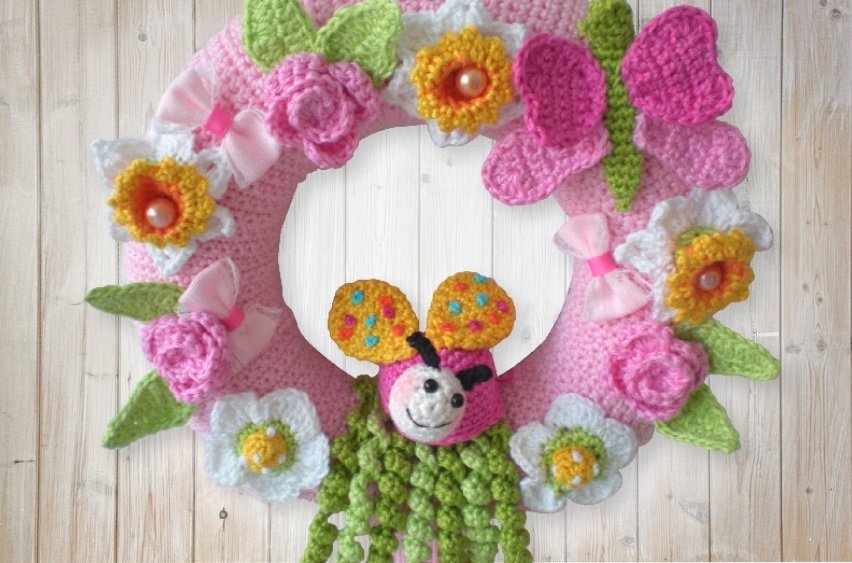 Dieser Kranz ist eine tolle Frühlingsdeko. Damit vertreibt man den grauen Winter und begrüßt seine Gäste mit freundlichen Farben. Er macht sich aber auch im Haus, an der Wand toll als Deko. Wenn Du ein besonderes Geschenk brauchst, dann häkelst Du ihn in den Lieblingsfarben des Beschenkten.