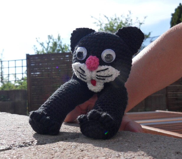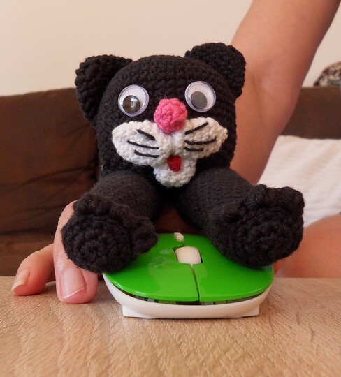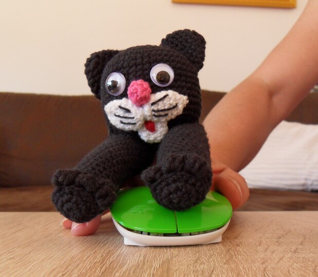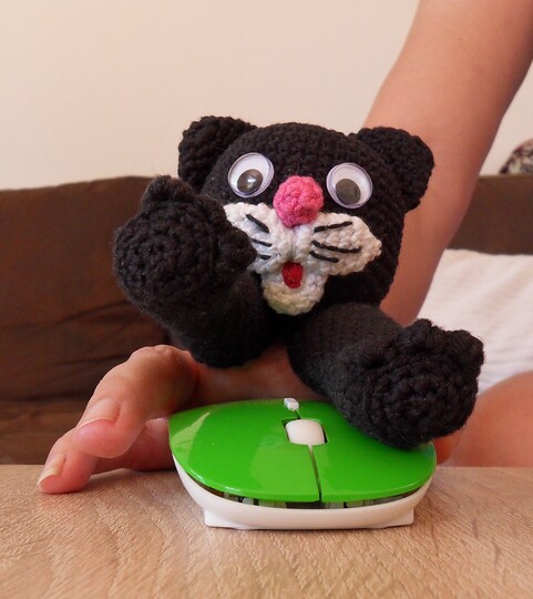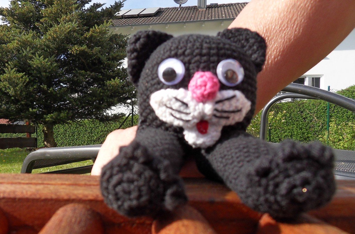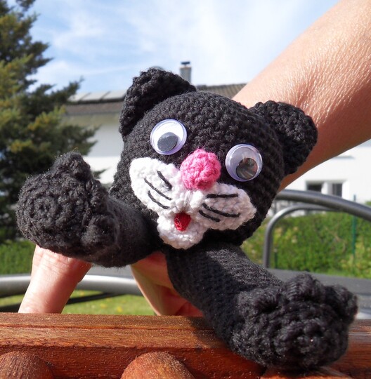 Hallo ich bin eine zwei Finger Handpuppe. Ich bin ein sehr fröhlicher Geselle, mit mir kann man ganz viel Spaß haben. Kleine Kinder finden mich super süß. Ich bin aus einem Baumwollgarn gehäkelt und somit kann man mich gut waschen. Ich bin ca. 13cm groß und ganz leicht zum nach häkeln.