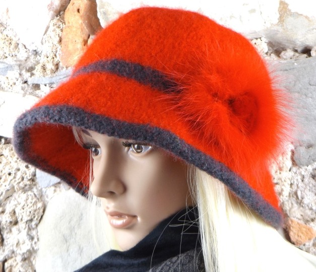 Erst gestrickt - dann in der Waschmaschine mit 40 Grad gewaschen und verfilzt. Dadurch wird dieser tolle Hut wetterbeständig und ist auch bestens an Regen- und Schneetagen geeignet.