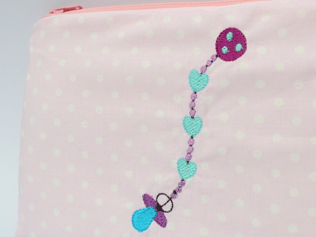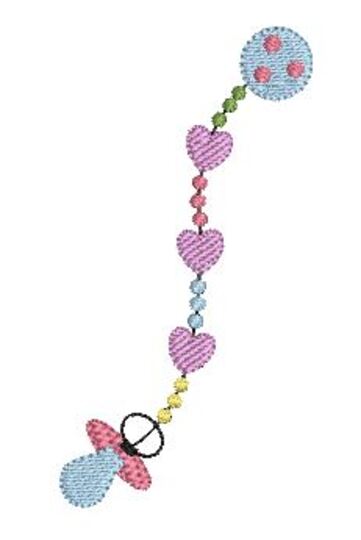 Die beliebte Schnullerkette als süße Stickerei, einmal mit Herzchen und einmal mit Sternchen.