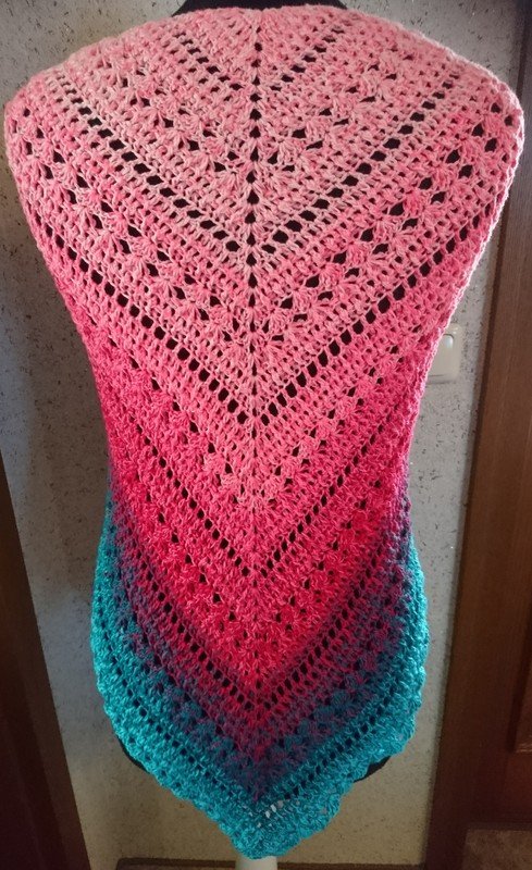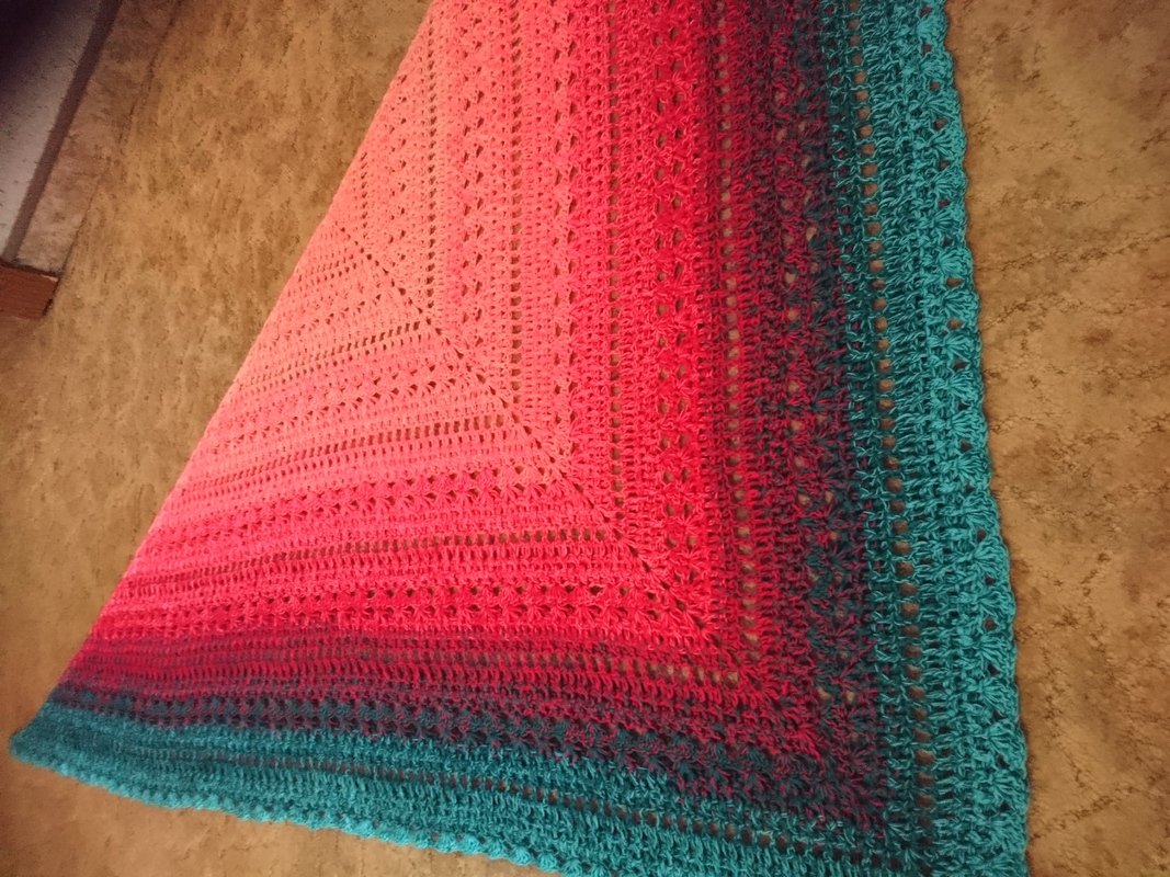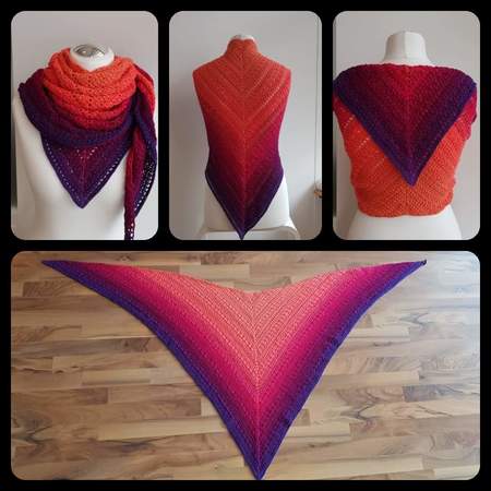 Da das Muster ein wahrer Garnfresser ist, solltet ihr mindestens 1000m Farbverlaufsgarn nutzen. Nach oben hin sind euch bei der Garnmenge natürlich keine Grenzen gesetzt.