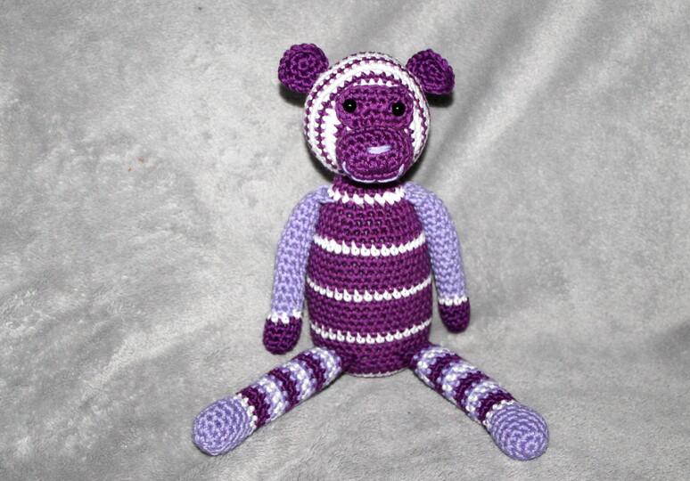 Die Anleitung beschreibt ausführlich, wie ein lilaner und ein blauer Greifling gehäkelt werden.