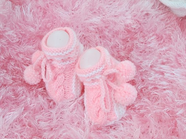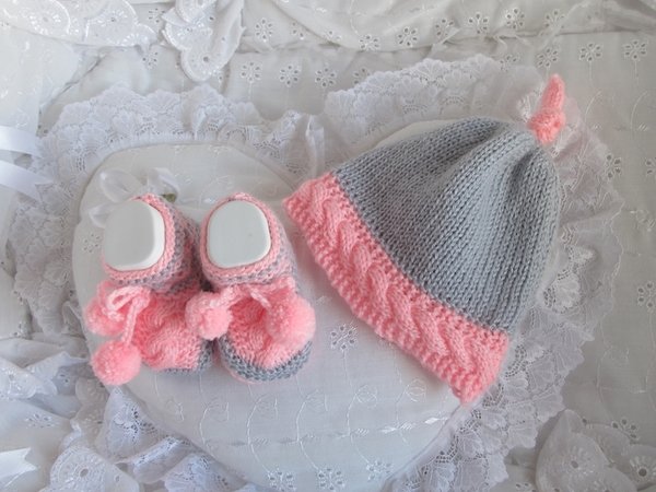 Strickanleitung für ein wunderschönes Set, Babyschuhe und Mütze Gr.50 Das Set ist aus Babywolle gestrickt. Die Anleitung ist sehr genau beschrieben und mit vielen Fotos