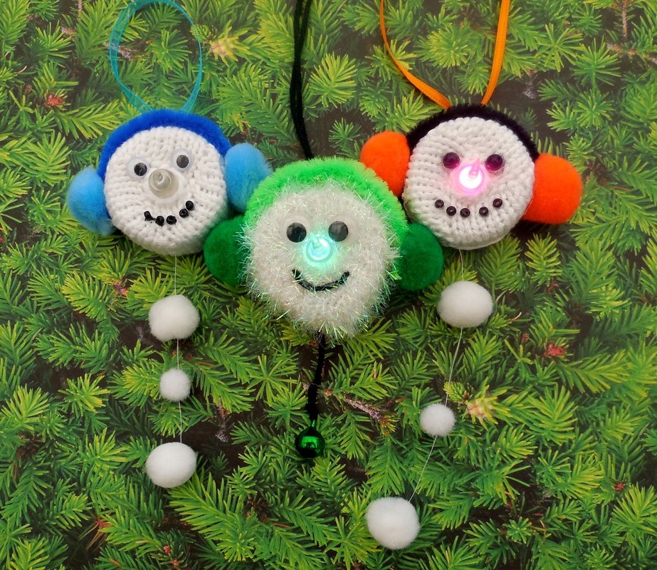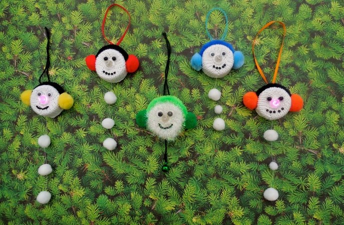 weisse Pompons in beliebiger Größe für die Schneebälle.