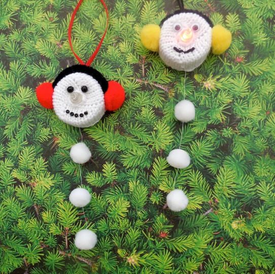 Der Überzug ist super schnell gestrickt aus Restwolle und die Verzierungen sind auch schnell angebracht. Sie sollten jedoch immer ein paar LED Teelichter, Pompons und Chenilledraht (wobei hier auch eine dicke Kordel ihren Zweck erfüllt) zuhause haben.