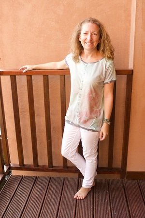 „Sofia“ ist ein lockeres Oberteil mit einer optischen Knopfleiste.