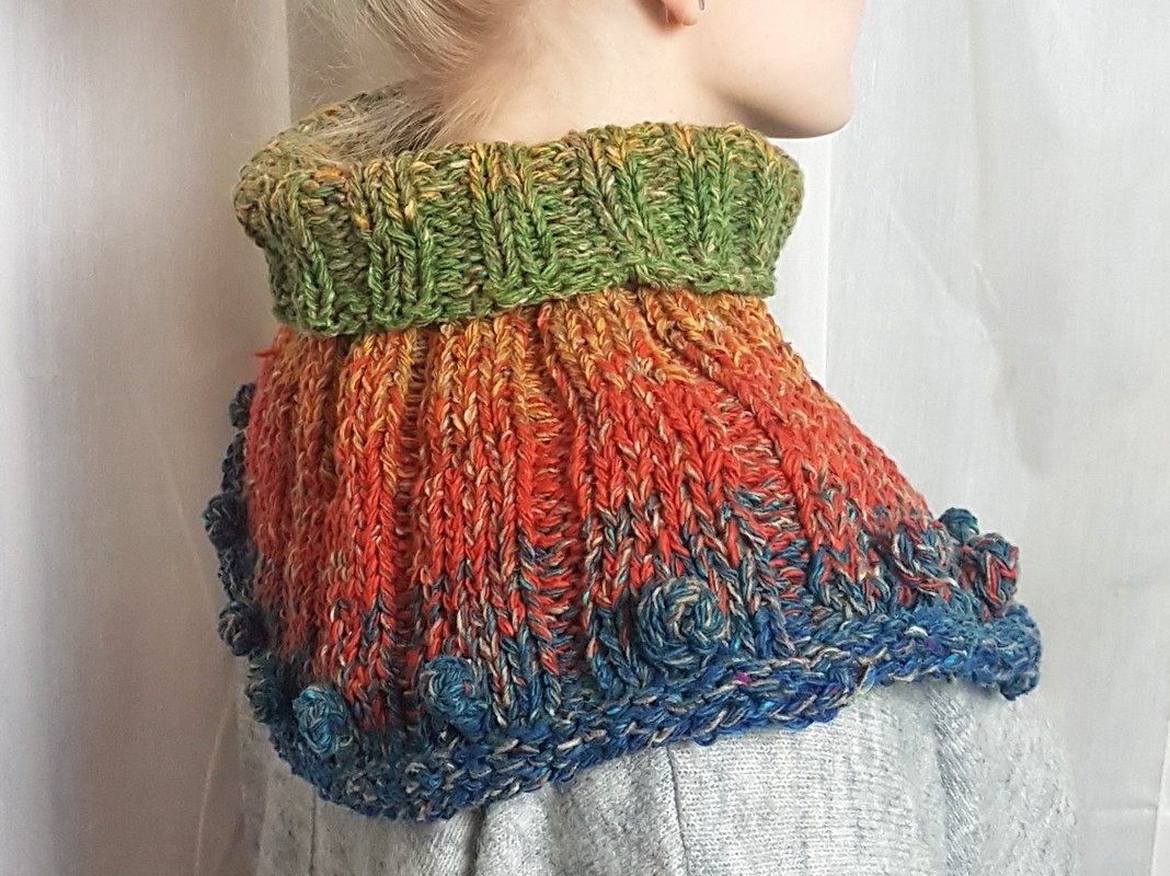 Noppen schmücken den Rand. Die Anleitung beinhaltet Strickschrift und Textanleitung, sowie Foto´s. Bei Rückfragen antworte ich zeitnah, damit Ihr Euren Loop schnell fertig bekommt;)