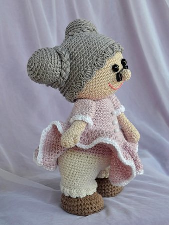 Mit der angegebenen Wolle wird Oma Rosl ca 27 cm groß.