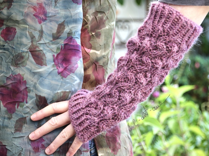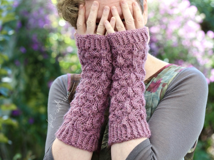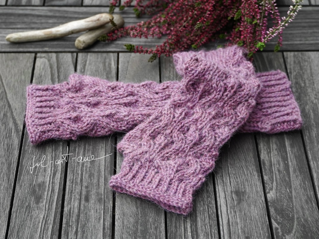 Die Armstulpen KJELLRUN werden als fingerlose Handschuhe gearbeitet, d.h. es gibt eine elegant eingepasste Daumenöffnung (Daumenkeil) und sie sind zu den Fingern hin offen. So habt Ihr auch bei kühleren Temperaturen warme Hände aber genügend Freiheit um noch die verschiedensten Arbeiten zu verrichten.