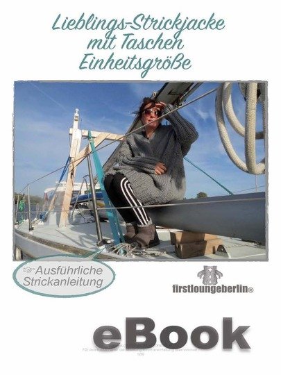 Lieblings-Strickjacke, Cardigan, Grobstrickjacke übergroß, in Einheitsgröße, gut passend für alle bis Größe XXXL/58/60. Sie kann superleicht abgeändert und auf eigene Wünsche angepasst werden. Die Grobstrickjacke hat seitlich Taschen. Das Schnittmuster dafür ist im eBook ebenso beigefügt. Die Anleitung ist sehr ausführlich und für Strickanfänger, die nicht nur Mützen und Schals stricken wollen, sehr gut geeignet. Rechte Maschen, linke Maschen werden hier gebraucht, die Strickteile werden mit einer Handnähnadel zusammen genäht. Rundstricknadel 12 mm. Eine Checkliste, kleine Legende, Basisstrickwissen, Wollangaben, Maßangaben, Tipps zum Anpassen, Materialverbauch, Bezzugsquellen, Schnittausdruck, Strickanleitung mit Fotos usw. sind enthalten.