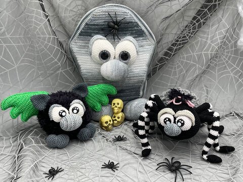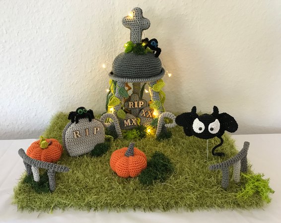 Die Geisterfamilie Grumpatsch auf dem Friedhof ist eine Anleitung aus der Aktion "Süßes oder Saures" der Facebookgruppe: Häkelspaß mit den Häkelweibern. Wir sind 4 unterschiedliche Anleitungsautoren und lassen uns regelmäßig zu bestimmten Themengebieten - gemeinschaftliche Projekte einfallen.