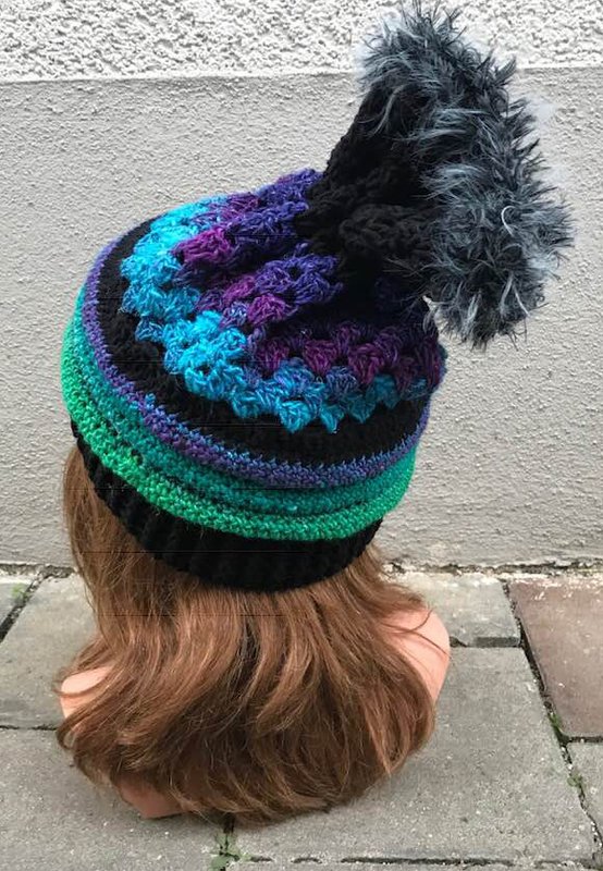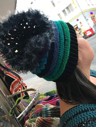Diese Mütze mit den drei wulstigen, farbigen Schläuchen gleich am Anfang ist eine tolle Handarbeit und macht viel Spaß beim Häkeln.