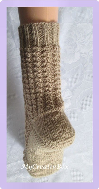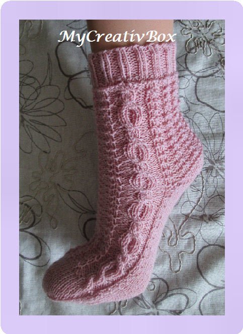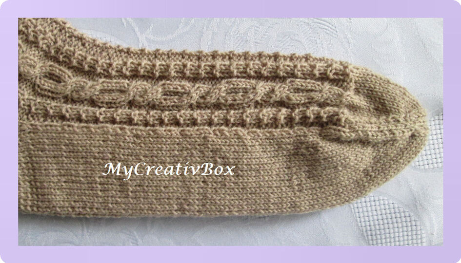 In der Anleitung werden Ferse und Spitze nicht näher erläutert; diese werden in gewohnter Arbeitsweise gestrickt.