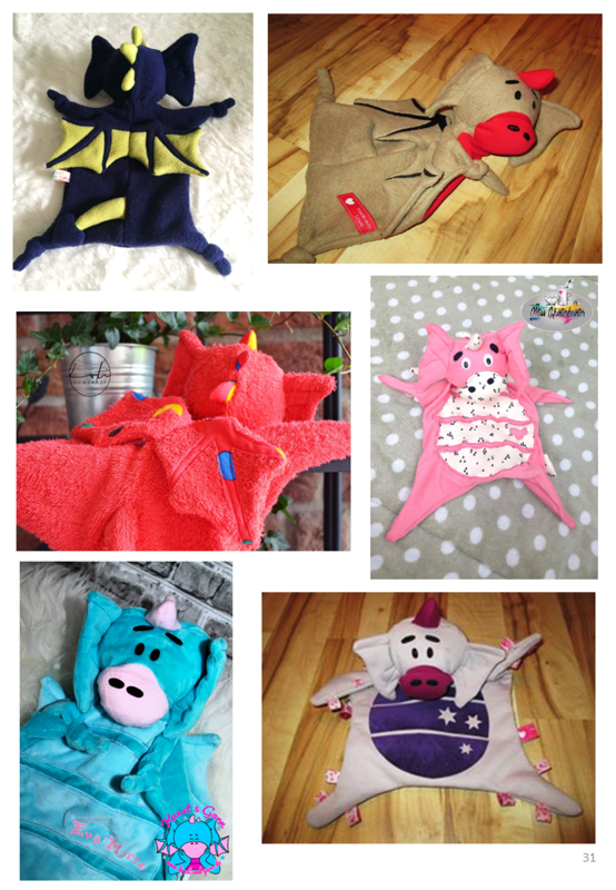Beim Kauf dieses 32 seitigen eBooks erhältst du eine Nähanleitung inkl. Schnittmuster, einer detaillierten Stoffzuschnittliste, Ausmalbildern für die Kids, Erklärungen zu den notwendigen Stichen und vielen Beispielbildern. Außerdem sind als Plotterdateien 3 verschiedene Bauch"applikationen", die Flügelapplikationen, so wie das Gesicht enthalten.