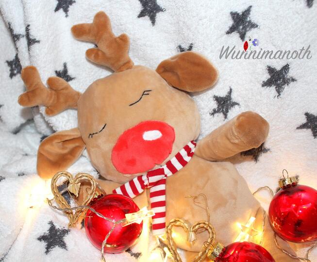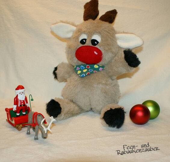 Das kleine Rentier eignet sich nicht nur hervorragend als Plüschi-Geschenk, sondern auch als Deko. (Am besten zum Santa Klausi dazu ;-) )