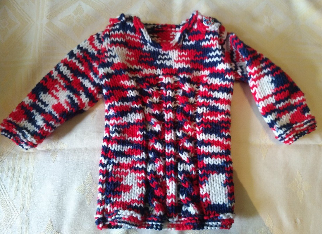 Für die kalten Wintermonate ist dieser süße Pulli mit Mütze ideal geeignet. Die Anleitung ist für 2 Größen: Gr. 1 – 3 Monate / Größe 6 – 9 Monate