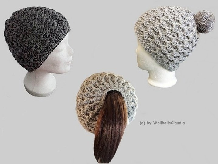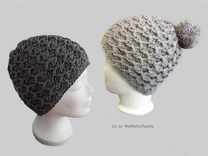 Diese tolle, kuschelig-warme Mütze hält den Kopf schön warm. Das hier verwendetet 3-D Muster ist leicht nachzuarbeiten. Ob als herkömmliche geschlossene Mütze- oder als moderne Zopfmütze, sie kann in jeder beliebigen Größe gehäkelt werden. Für Damen, Herren und auch Kinder.